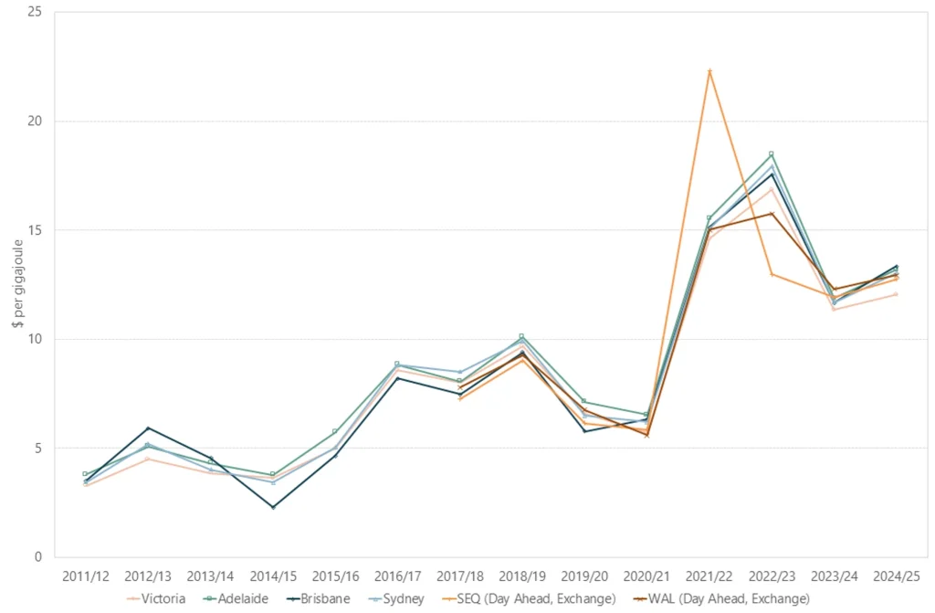 Fig 2: Australian gas market prices 2011-2025